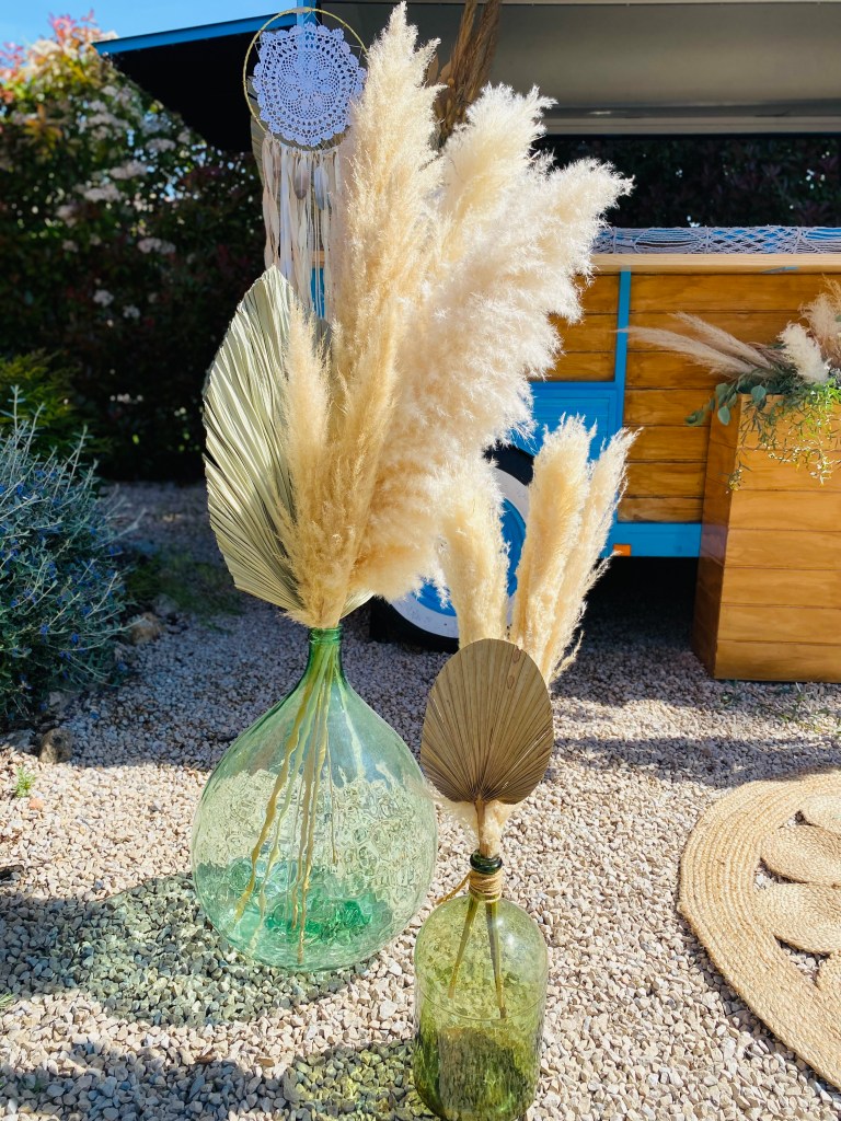 Envie d’une décoration bohème pour votre évènement… Je vous propose des Créations en Fleurs séchées, Accessoires et décoration au style bohème pour vos évènements. Style très tendance aujourd’hui, cette décoration peut s’adapter pour vos soirées et anniversaires mais je peux également vous proposer une décoration adaptée à votre thème. Décoration des tables, des buffets, de la salle de réception..